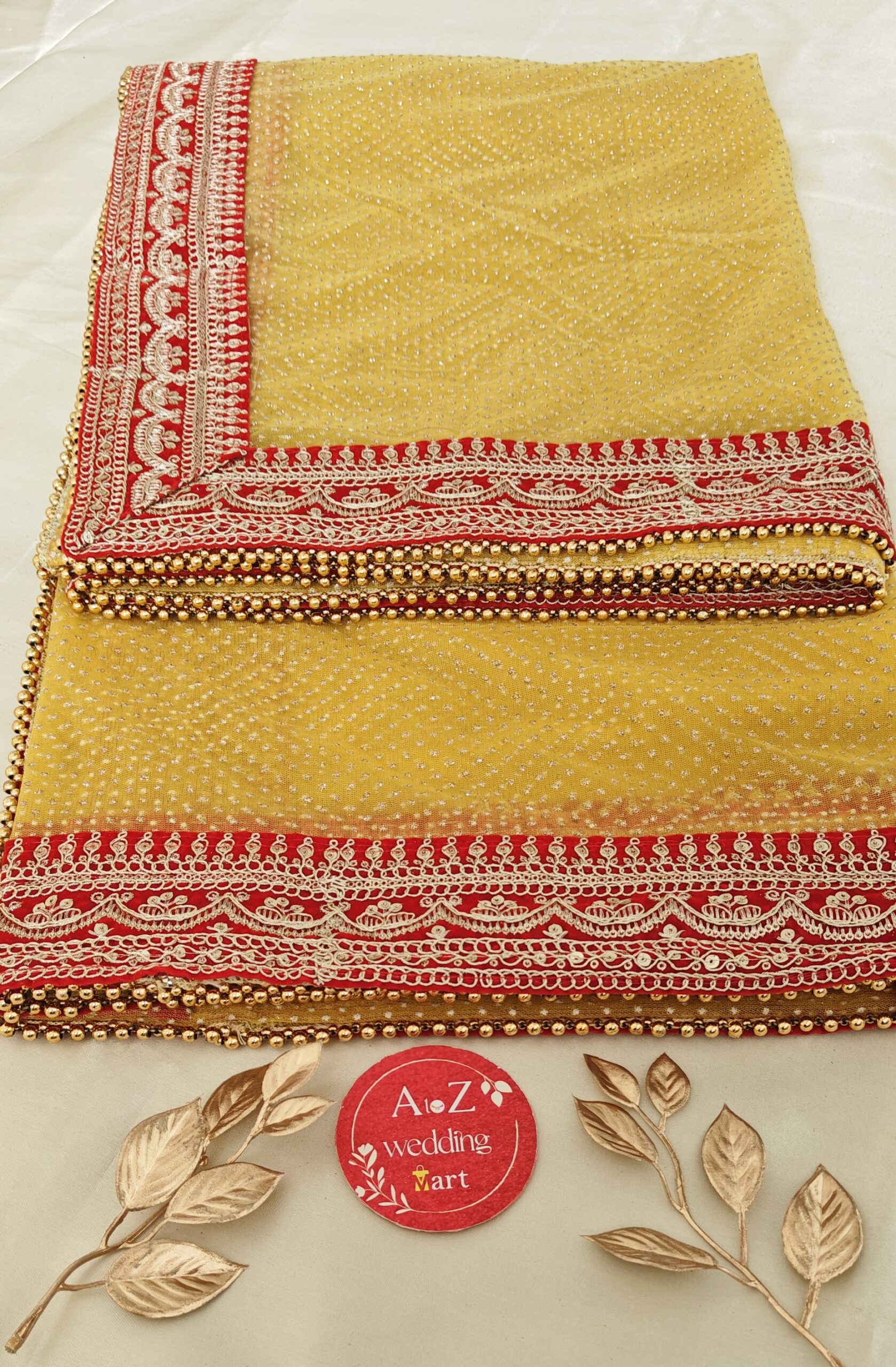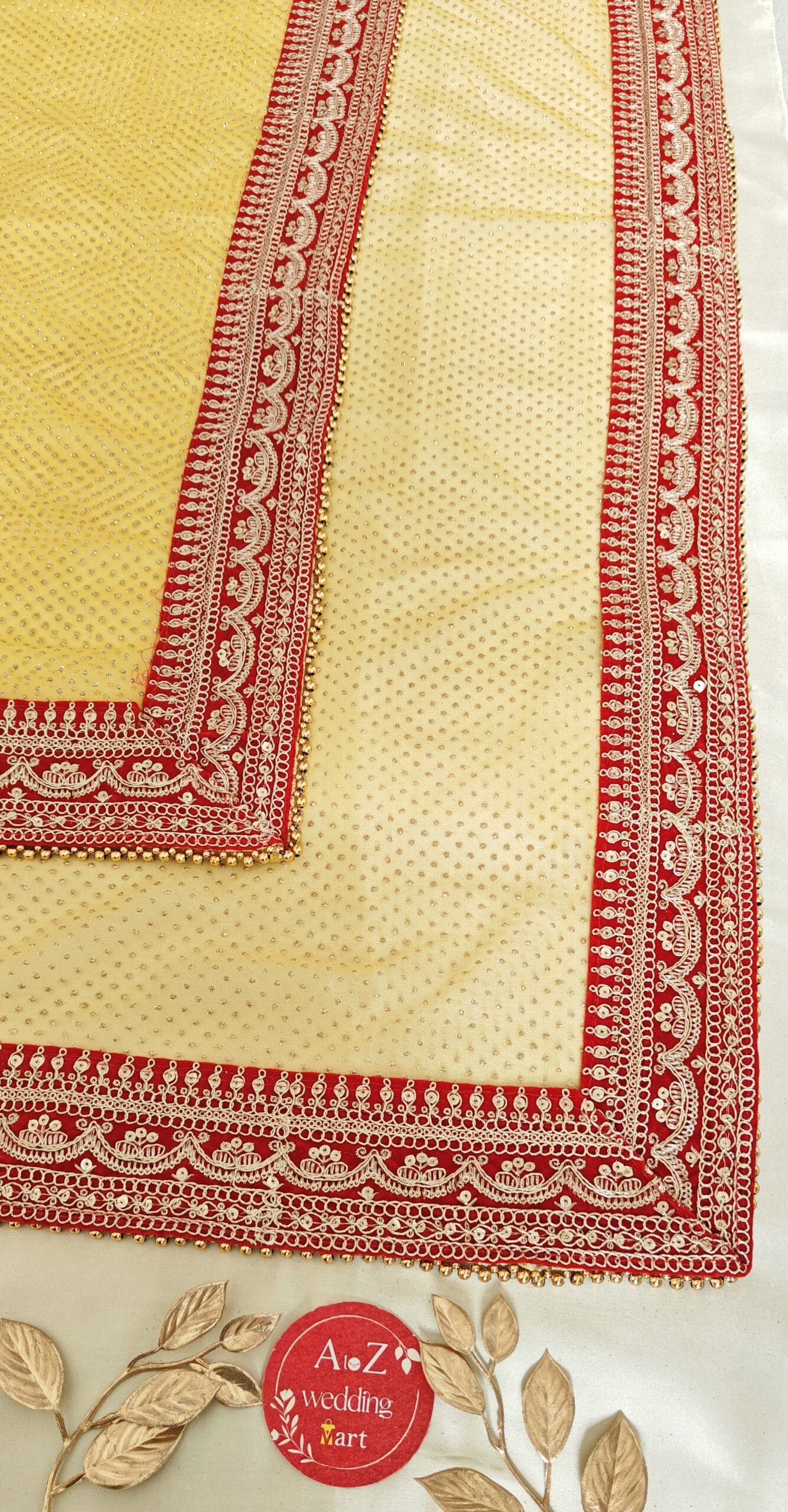 Ideal for weddings, engagements, or ceremonial functions, this bridal chunri complements a variety of ethnic outfits, adding a regal and ethereal charm to your look. A must-have for the modern bride!