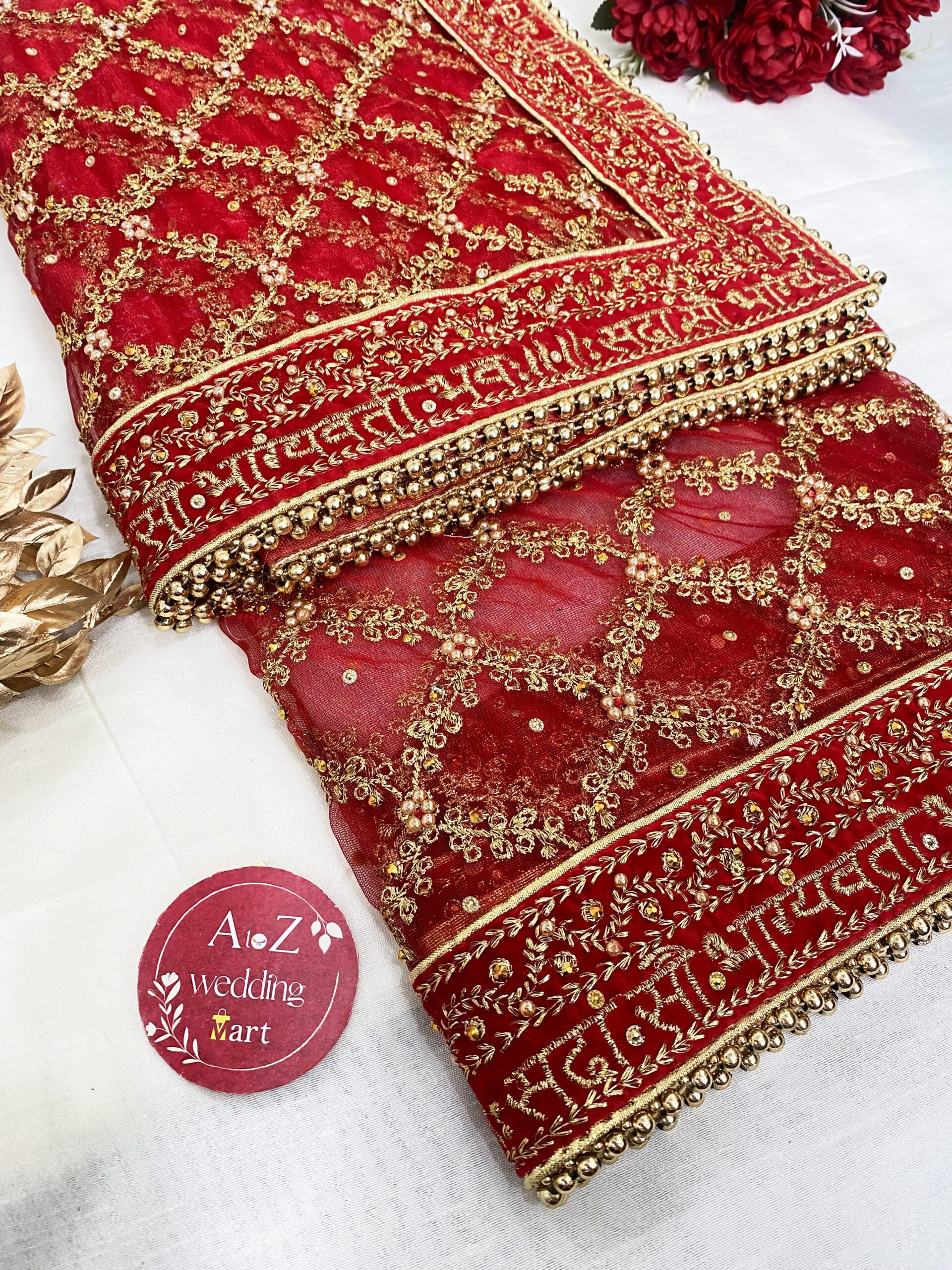 Versatility is at the heart of this bridal dupatta, offering endless styling options to suit your personal taste. Whether draped gracefully over your shoulders, worn as a veil, or styled in a unique way that reflects your individuality, this heavy red bridal dupatta styles adapts to your bridal vision. Its lightweight nature ensures comfort without compromising on style, allowing you to enjoy your special day with ease and grace.