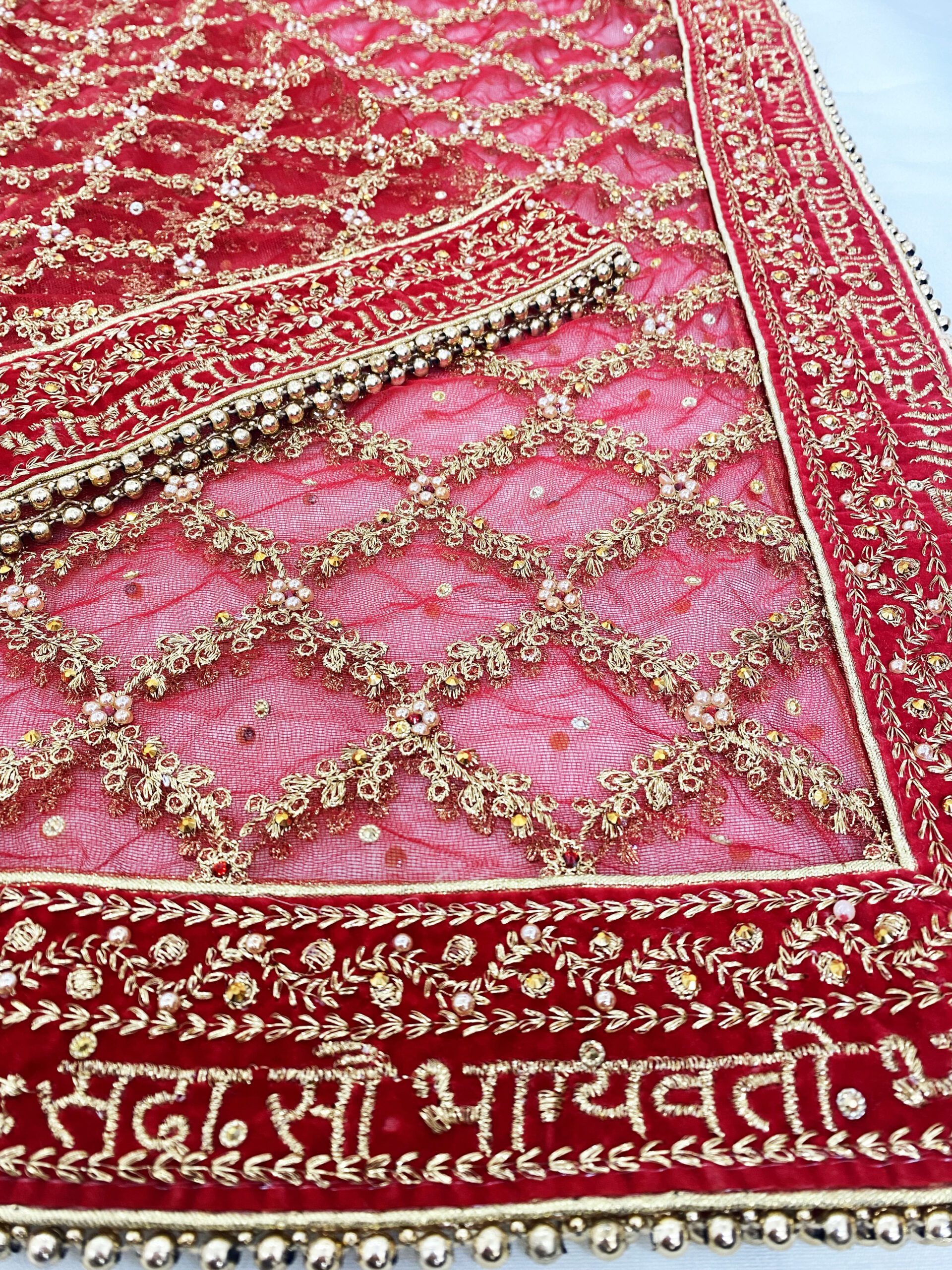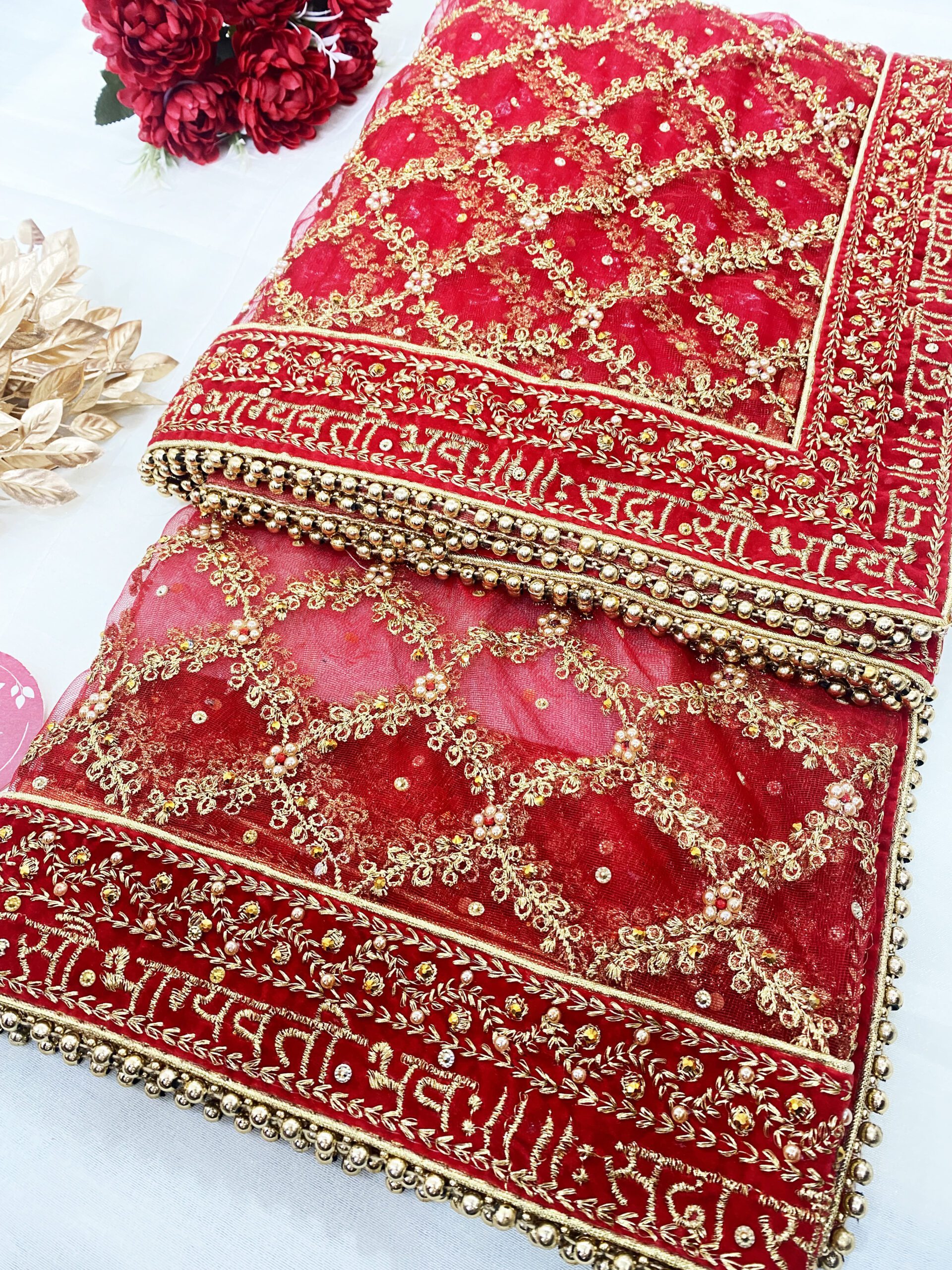 Ideal for weddings, engagements, and ceremonial functions, our heavy red bridal dupatta is the perfect accessory to elevate your bridal ensemble. This exquisite bridal dupatta styles complements a variety of ethnic outfits, adding a regal and ethereal charm that makes it a must-have for the modern bride.