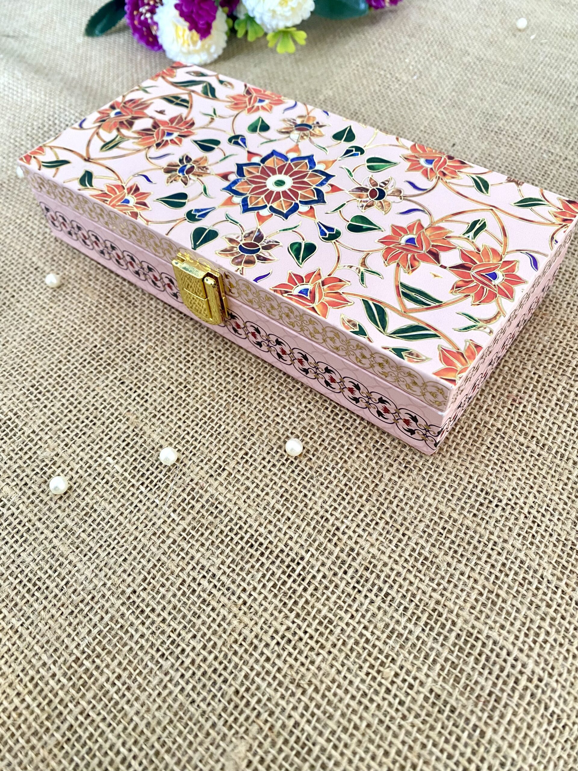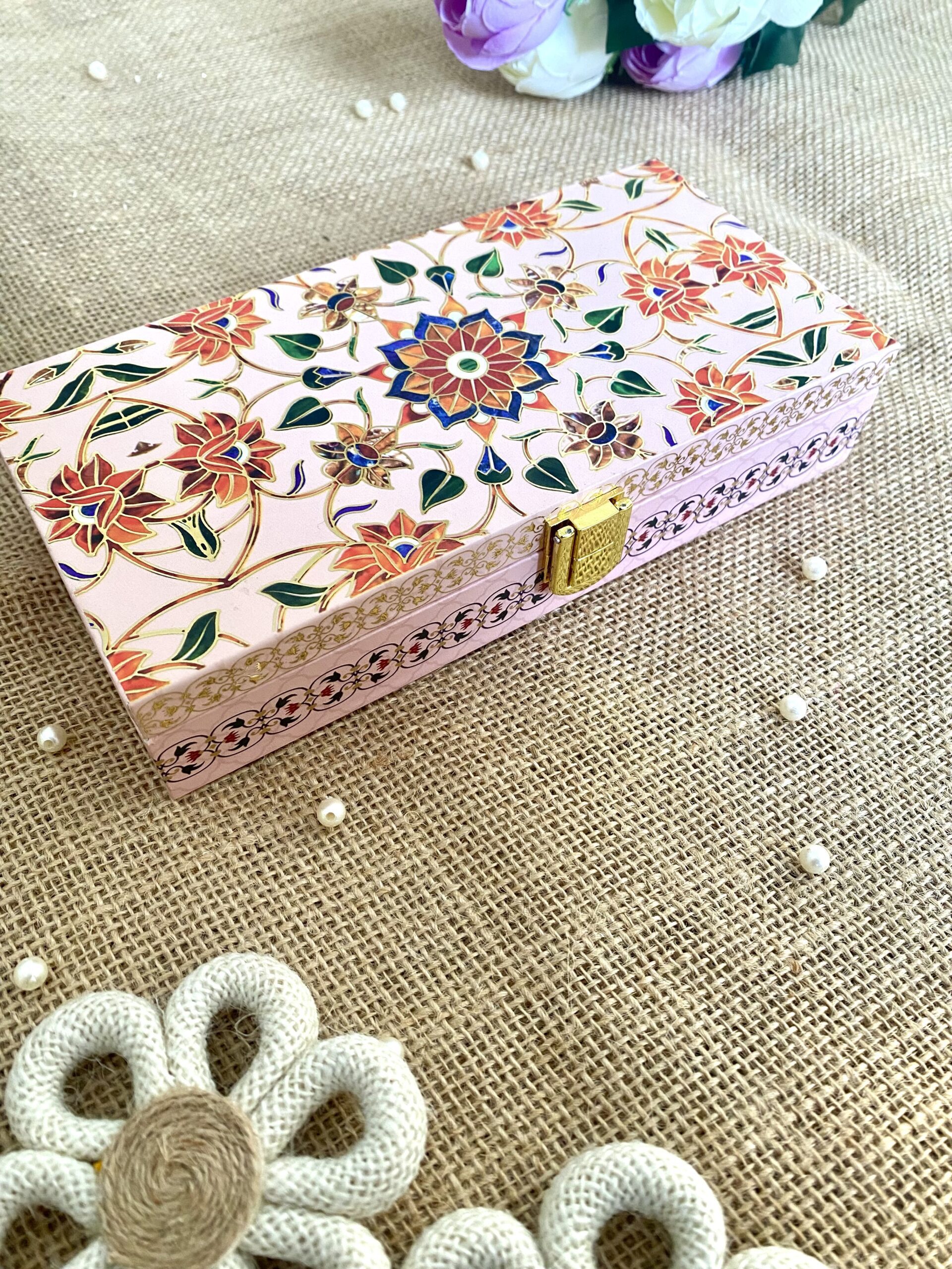 Each of our Gaddi Boxes features a variety of captivating designs and finishes, meticulously crafted with attention to detail. Inspired by the intricate patterns and artistic elegance of Pichwai paintings, these boxes bring a touch of cultural richness, turning your gift into a cherished memory. Whether you’re seeking a vibrant, intricately designed box or a more subtle and refined option, our collection offers something to suit every taste and event.