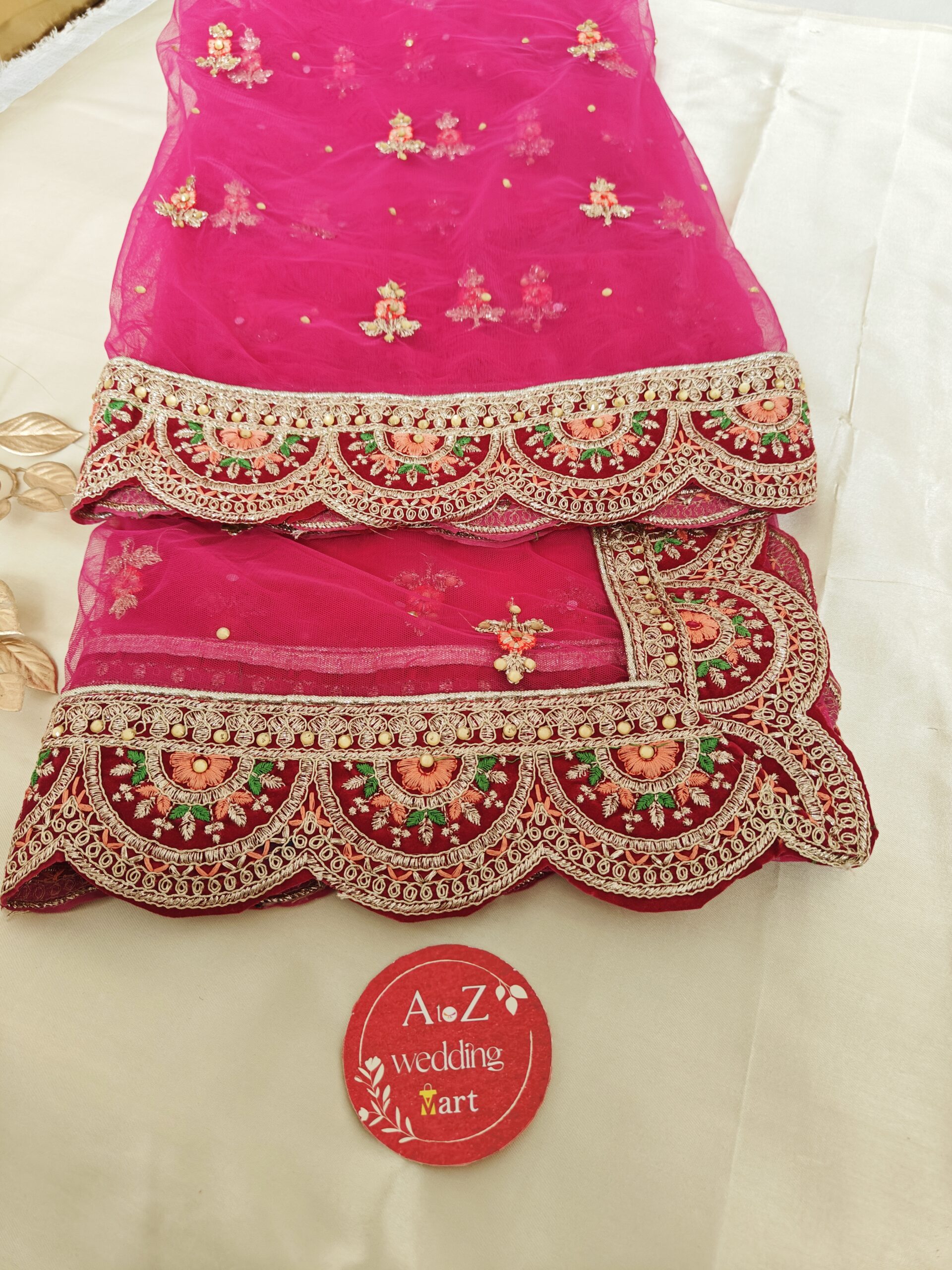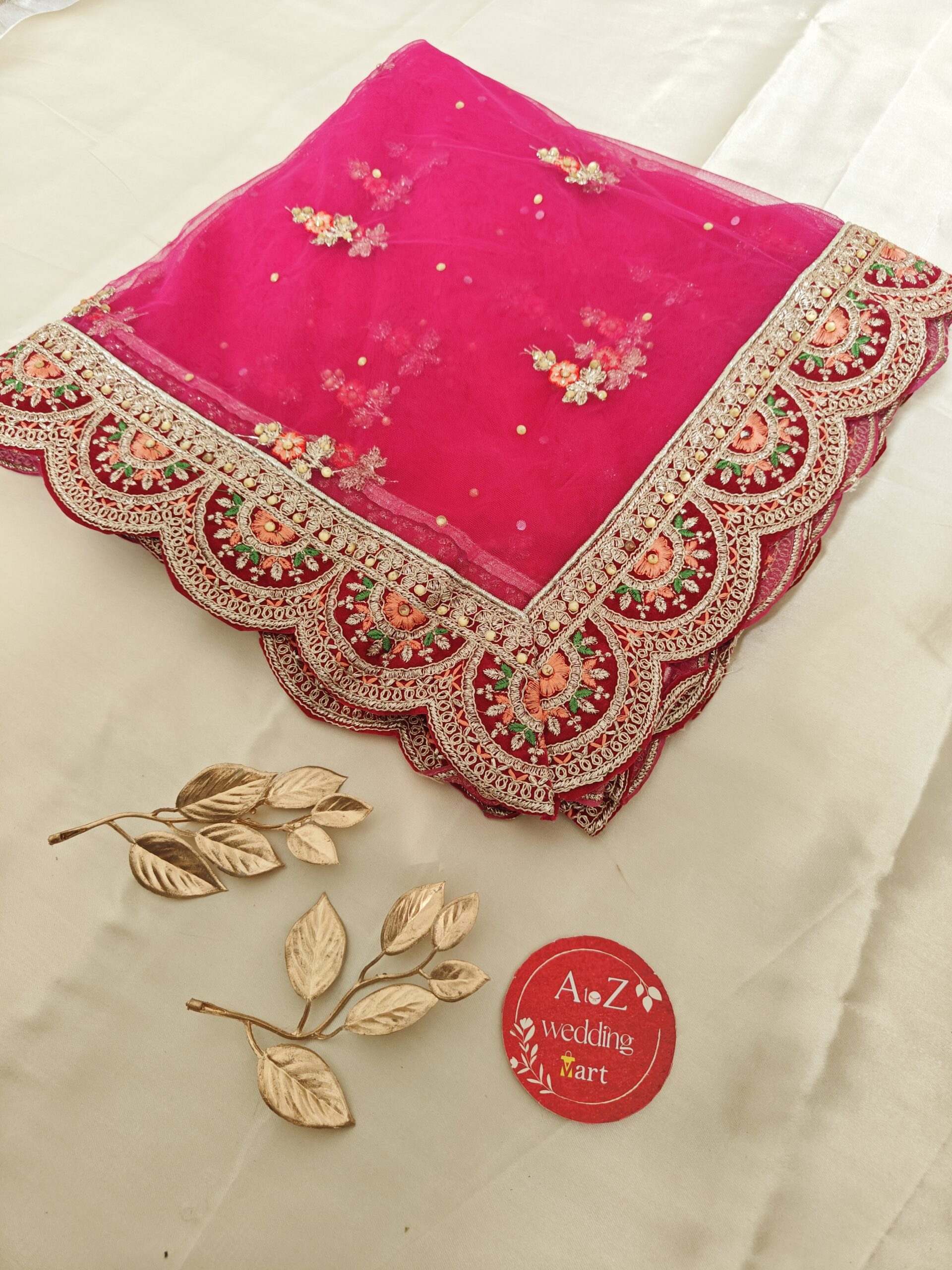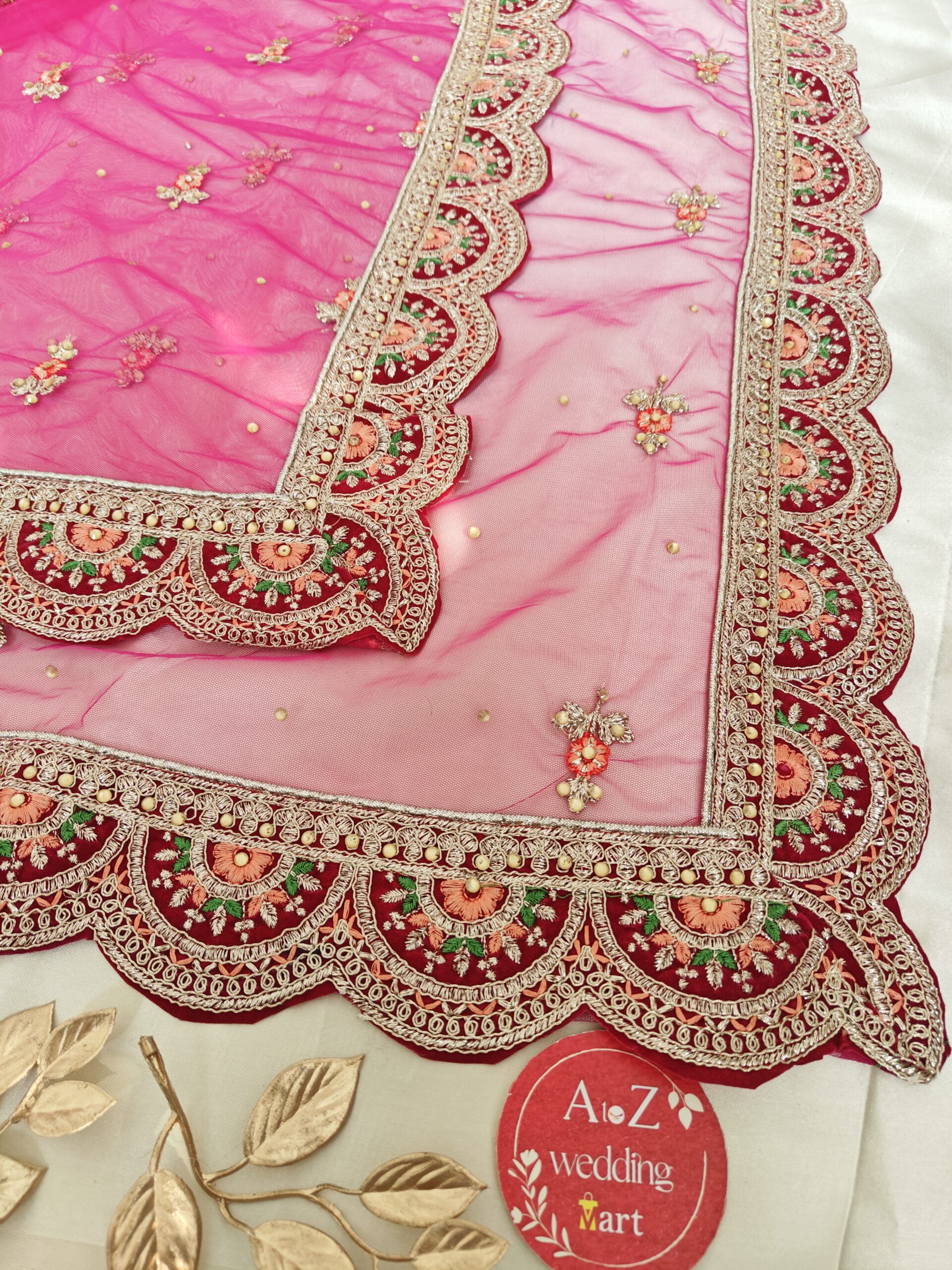 Pink Bridal Dupatta with Beautiful Scalloped Border