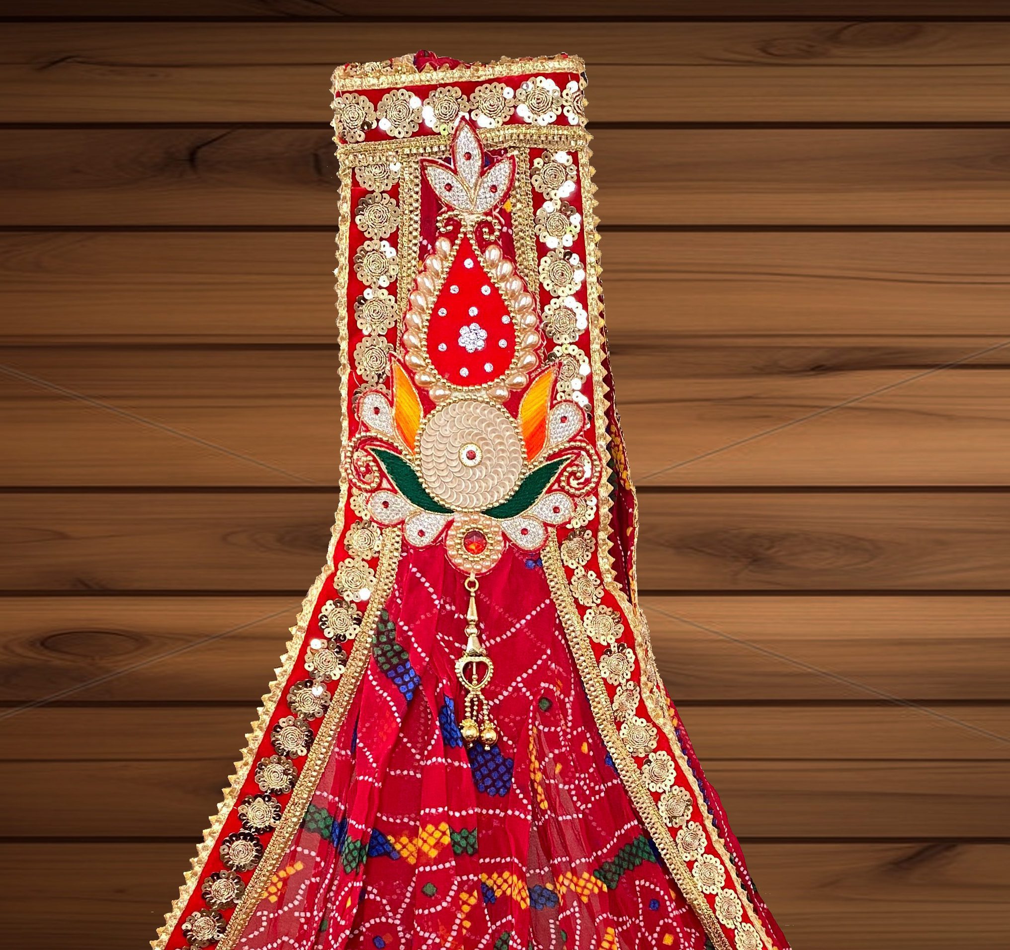 Beyond its stunning visual appeal, this bridal dupatta styles for wedding is a celebration of Rajasthani craftsmanship. It’s a versatile accessory that brings a touch of opulence to every occasion, from grand wedding ceremonies to festive gatherings. A true reflection of cultural heritage, this chunri is perfect for those who seek to make a memorable impression.