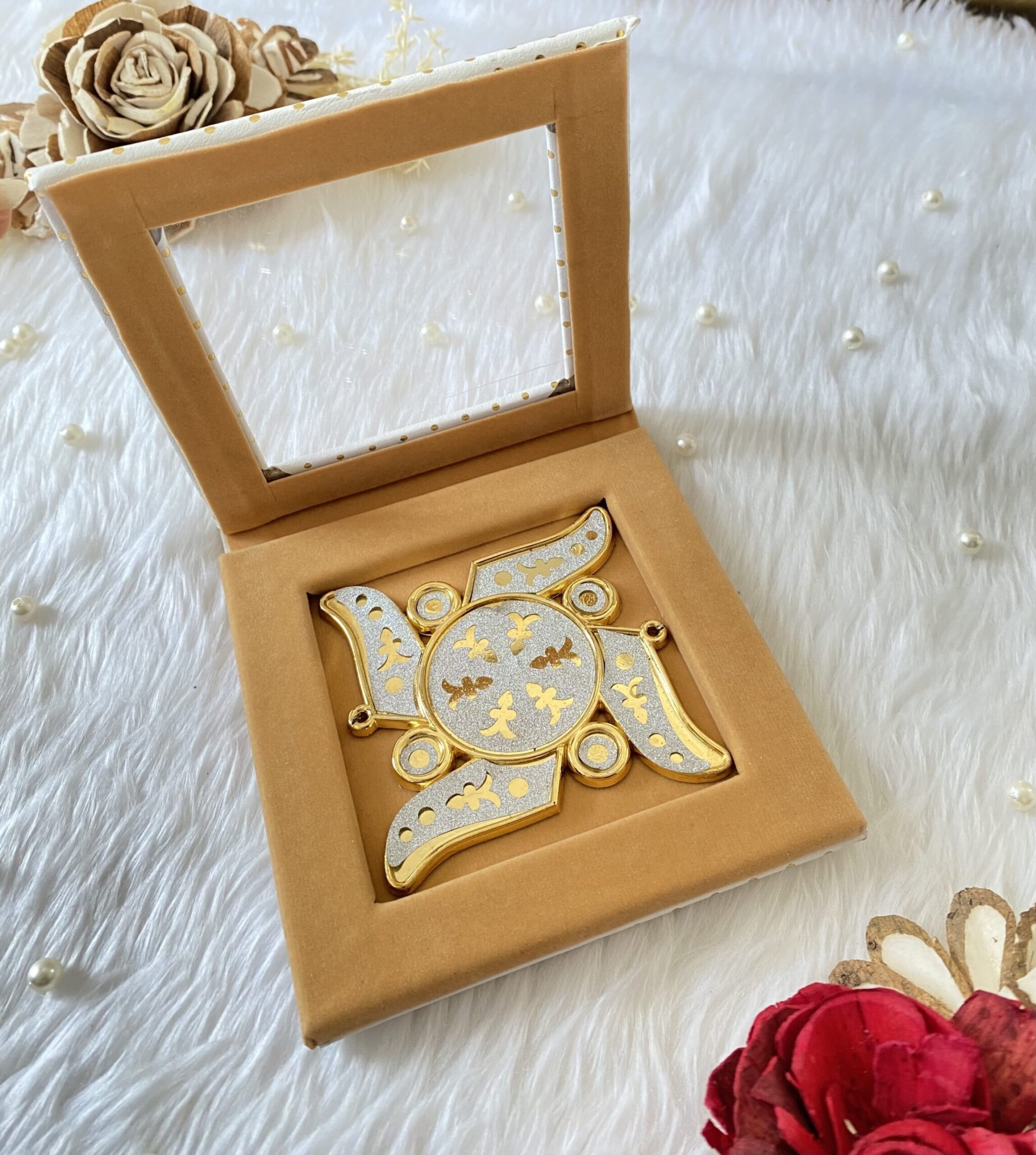 | Sathiya Design Coin Box – A Perfect Blend of Tradition and Modern Luxury Buy the Sathiya Design Coin Box, an elegantly handcrafted piece that combines tradition with a touch of modern luxury. Designed to hold up to 20gm coins, this exquisite box is perfect for those who appreciate fine craftsmanship and timeless elegance. Every detail of this ginni box reflects meticulous artistry. The intricate Sathiya design, known for its beautiful and elaborate patterns, is carefully etched into the surface, showcasing the expertise and dedication involved in its creation. These detailed carvings add a layer of sophistication, making the box not just a functional item but a piece of art that enhances any setting. Crafted from high-quality materials, this box is built to last, offering both durability and a refined aesthetic. Its compact size is perfect for safely storing precious coins or ginni, making it an ideal choice for special occasions like weddings, anniversaries, and festive celebrations. Whether used for personal storage or given as a gift, the Sathiya Design Coin Box serves as a meaningful and stylish keepsake. The combination of traditional motifs and contemporary design elements ensures that this ginni box stands out as a versatile and elegant piece. It embodies a perfect balance of cultural heritage and modern sophistication, making it suitable for various occasions and recipients. Explore our collection today to find the ideal box that reflects your appreciation for quality and tradition. With its intricate detailing and luxurious finish, the Sathiya Design Box is a perfect choice for adding a touch of elegance to your ginni storage or gifting needs. |