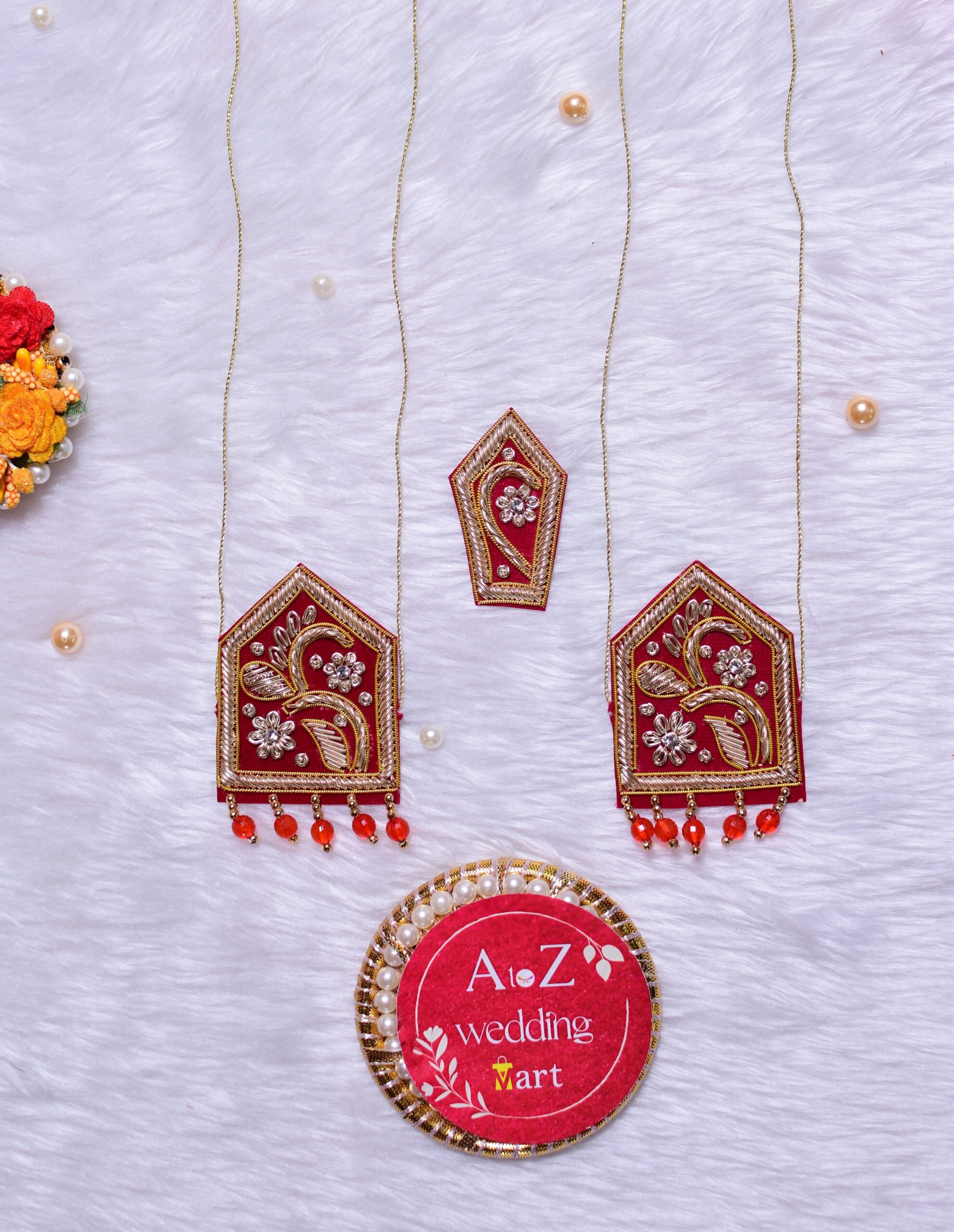 This wedding sevra jodi is designed with fine detailing, traditional patterns, and premium-quality materials, giving it a graceful and festive appearance. The set includes a matching pair for the bride and groom, making it perfect for coordinated wedding styling and rituals.