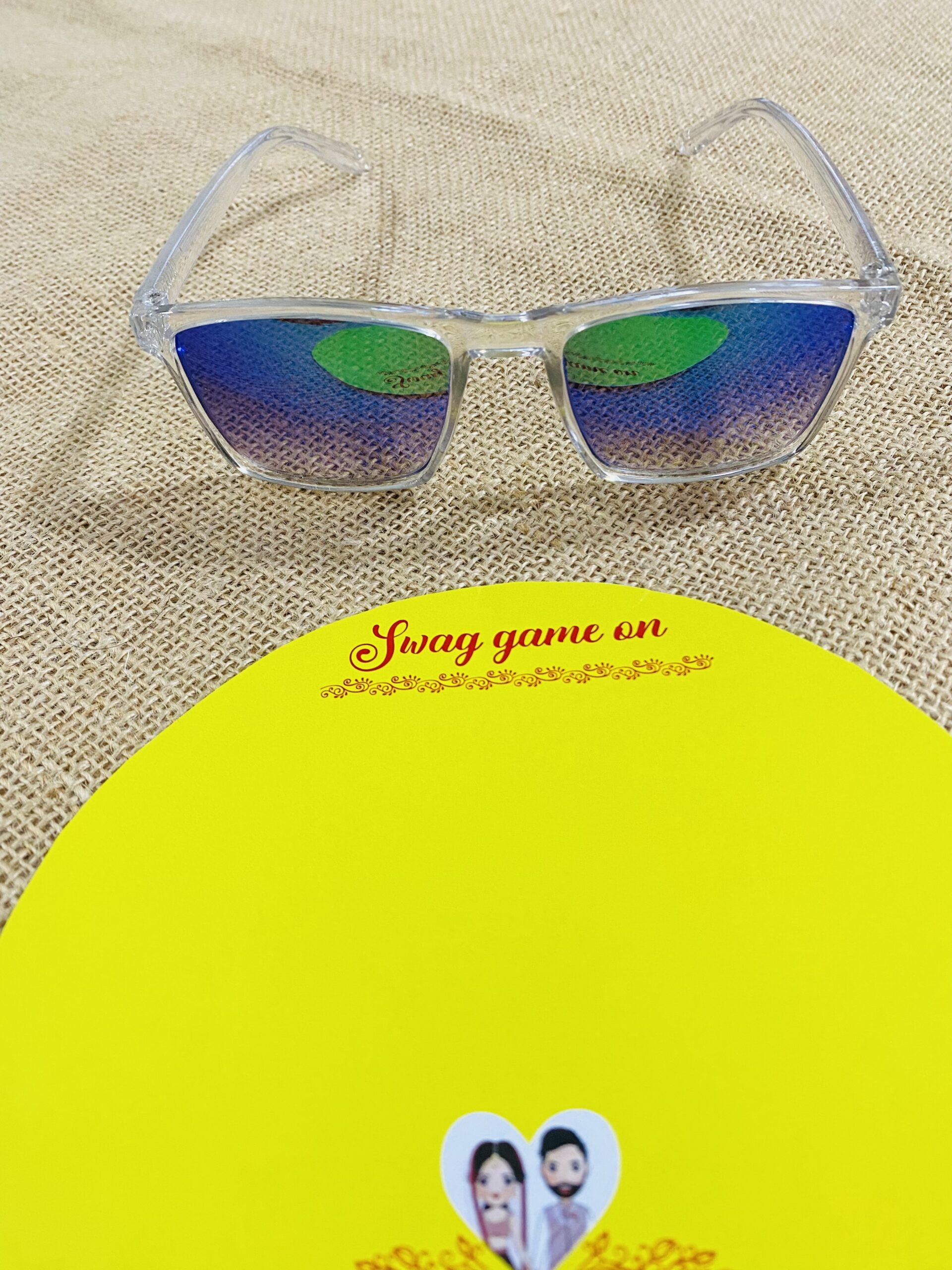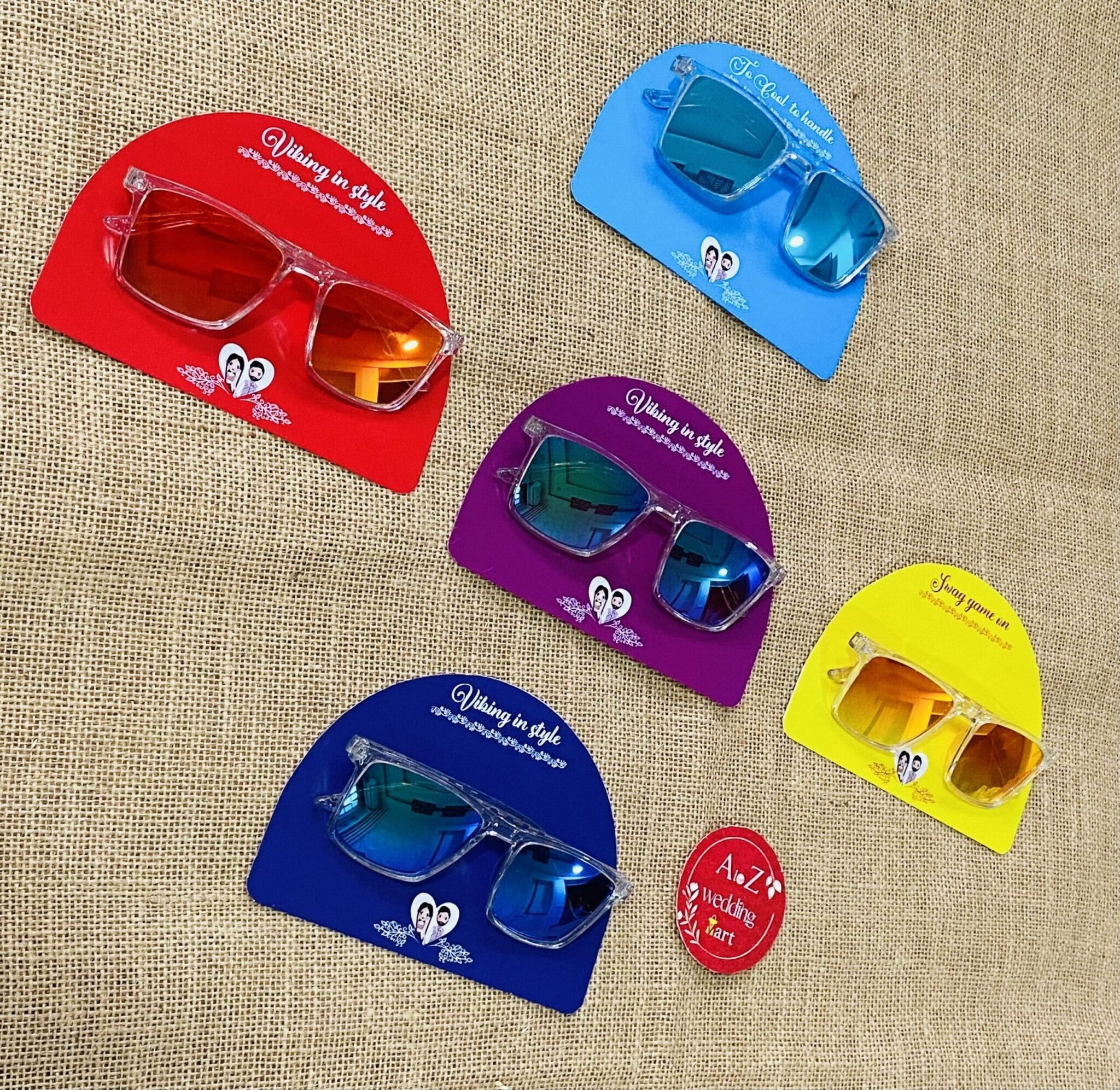 Add a fun and stylish twist to your wedding festivities with our Wedding Party Sunglasses collection! Perfect for Haldi, Mehendi, and poolside parties, these trendy sunglasses are designed to elevate the vibe of your pre-wedding events. Featuring vibrant colors and quirky frames, they bring a playful yet chic look to your celebration.